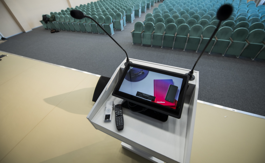 ✔️ мультимедийная трибуна включает в себя возможность подключения различных источников сигнала, а также презентационную систему Barco.