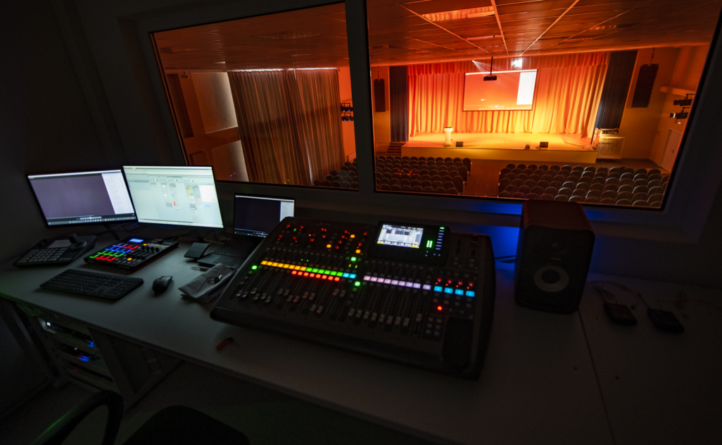 ✔️ в системе сценического освещения была применена классическая схема освещения: два плана над сценой, боковые выносы;